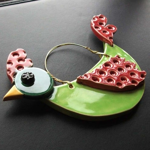 This cute little bird is designed to hang on the wall or from a plant or anywhere you like really!
