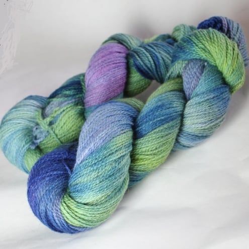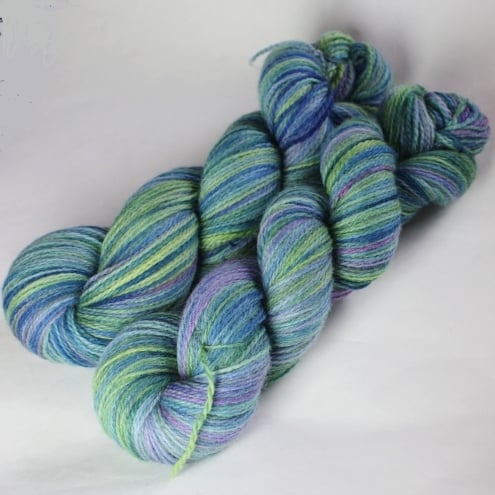 Named after the loch on Islay, this yarn combines grassy green with blue and