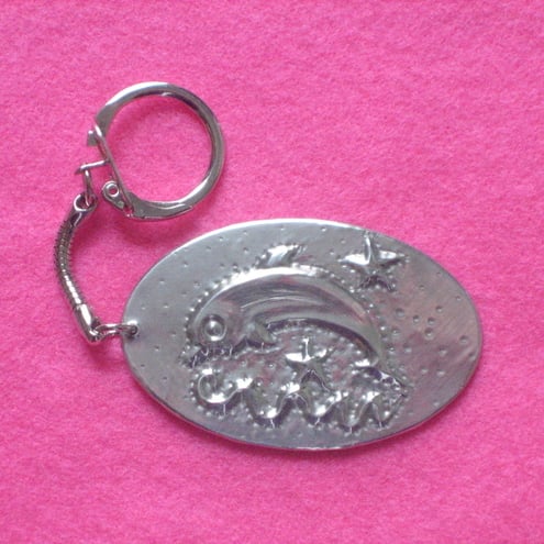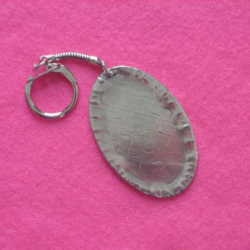 Was £6.50, now £4.50. This keyring has been hand-made in shiny modern pewter. (The design has been raised on a piece of sheet pewter, the raised area has been filled,then mounted on a rigid base) The oval measures 60 x 37mm,and is light in weight.