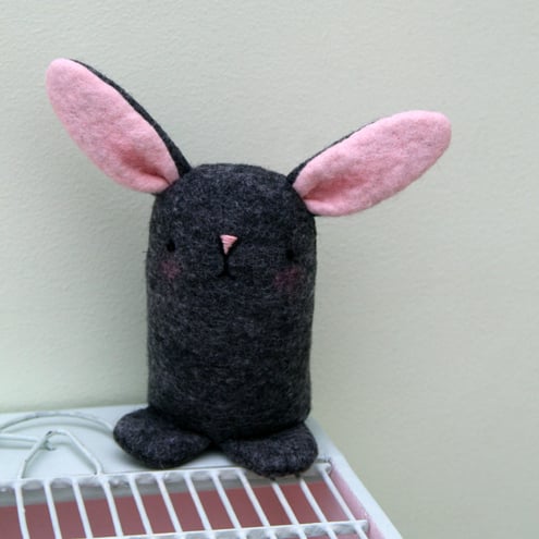 Here we have a cute little bunny, made lovingly by me out of soft Wool felt, he is stuffed with quality stuffing and also weighted with pellets(sealed in a pouch for safety).His cute face is hand embroidered. A nice little friend for a child this easter. Each one is slightly different as they are hand made. Won't you give him a home. He measures approx 6" high including ears a perfect size to cuddle. This is for the grey bunny his friends are available in other listings.