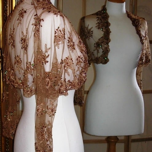 This stunning Beaded and Embroidered Tulle Bolero can be Custom Made (Shown here on a UK Size 12 mannequin) to your measurements. It will adorn any dress for evening wear or special occasion. A OOAK! (one of a kind) you will not find my bolero in the shops!