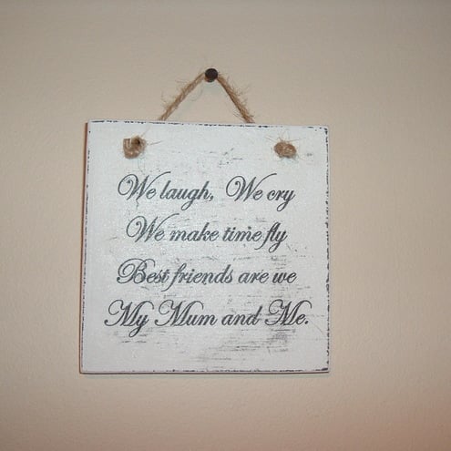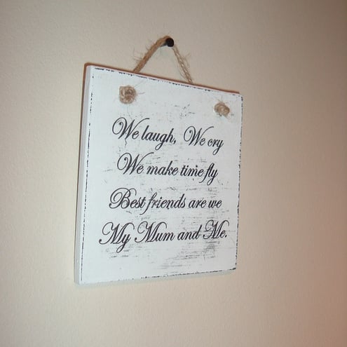 mum and me plaque, lovely little gift please allow 5 days before posting, ready to hang with natural jute, thank you