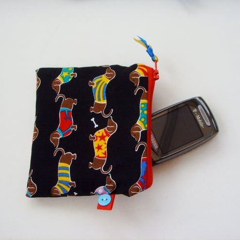 Cute little daschunds credit card / coin purse with contrasting zip and lining.
