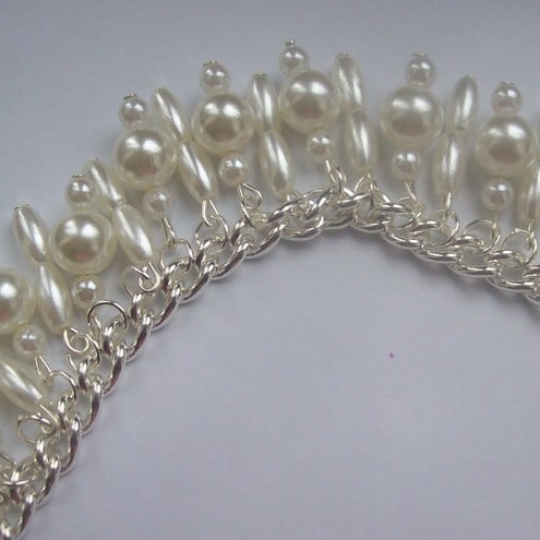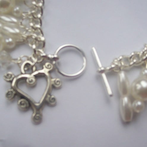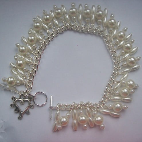 A generous selection of faux pearl quality beads internationally sourced. On a silver plated bracelet.
