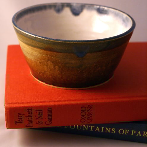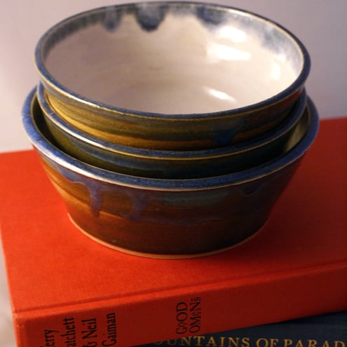 Set of three brown and blue wheel thrown ceramic bowls. Handmade Stoneware Pottery by littlewrenpottery on Folksy.