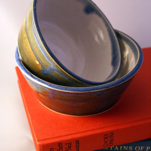 Each bowl has a flat bottom to sit flush on your kitchen counter and I've hand stamped it with the Little Wren Pottery seal showing its origin as a piece of handmade ceramics.