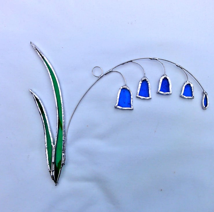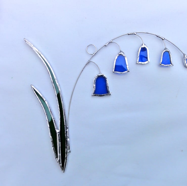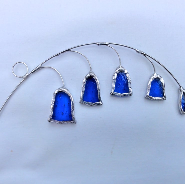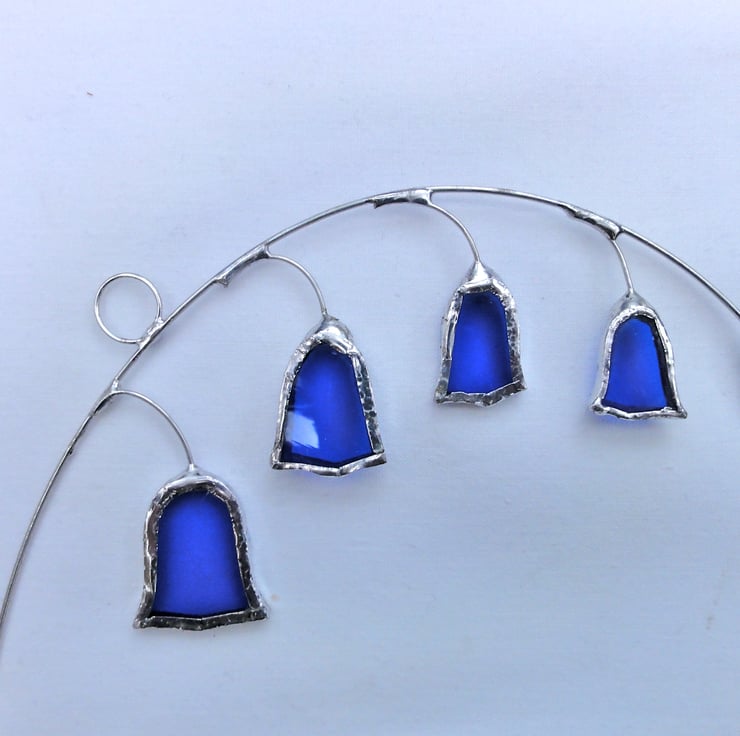 I have two sets of bluebells for sale - made from cobalt blue water glass and the leaves from dark green glass.