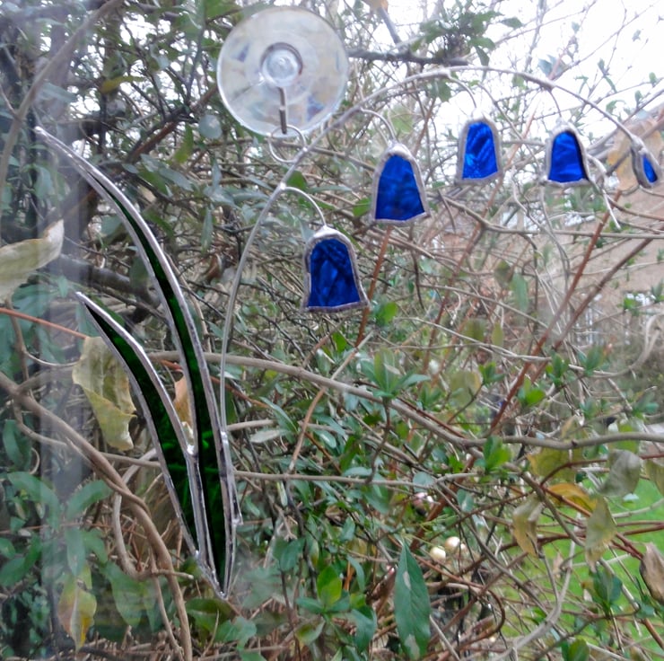 These beautiful bluebells have been made out of stained glass to hang in your window as a sun catcher.