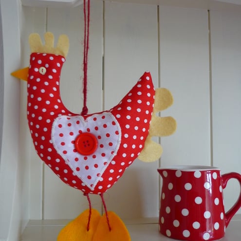 Here we have a shabby chic hanging chicken which has been lovingly handmade by me.