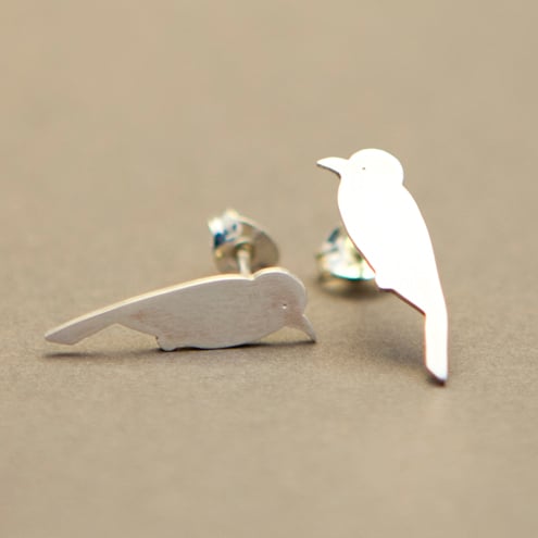 These beautiful handmade silver stud earrings are inspired by the Bee-eater bird. The simple design makes a lovely silhouette.