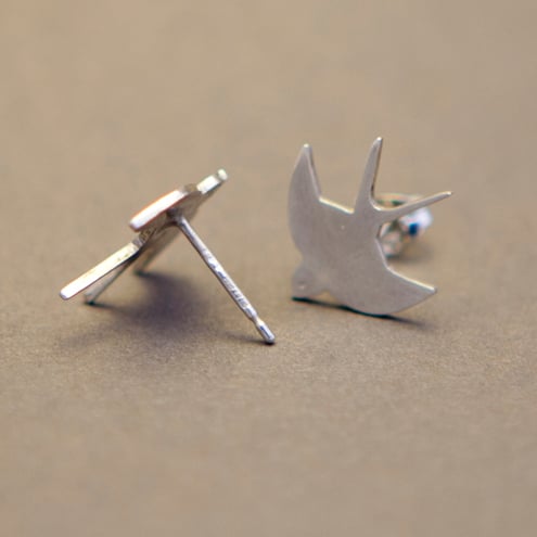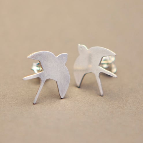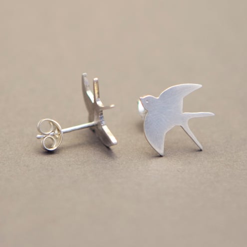 These beautiful handmade silver bird stud earrings are inspired by the Swallow in flight. The simple design makes a lovely silhouette.