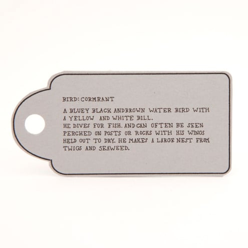 They come in a grey/black jewellery box made from recycled cardboard. With a handmade tag with information about the bird.