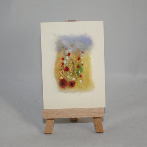 An ACEO is an affordable and collectable, miniature work of art in a standard format of 2.5 x 3.5 inches. The background panel of this ACEO is the standard size. The felted panel mounted centrally is about 5.5 cm in height.