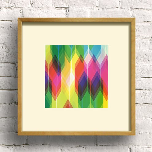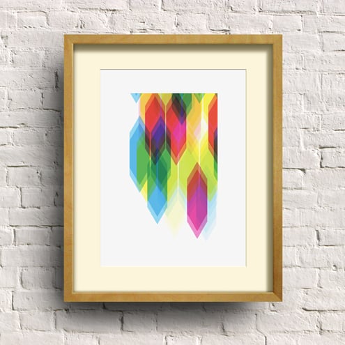 A beautiful and colourful geometric retro design, 'Prism' will add a splash of vibrant colour to any room. This print looks wonderful when framed, and will fit a standard IKEA Ribba frame.