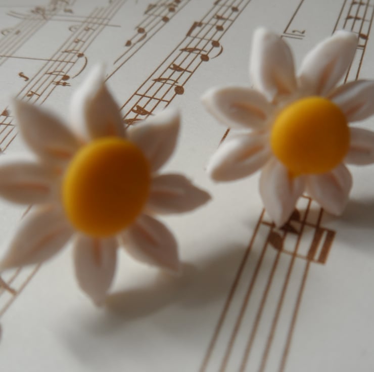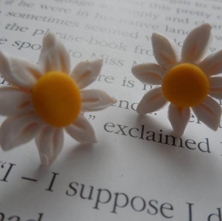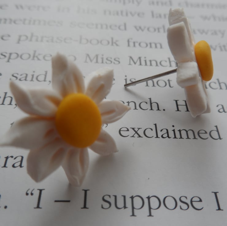 These are lovely Handmade Fimo Daisy ear studs are about 15 mm .