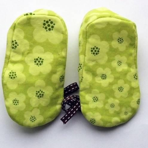 Spring is here and your little needs these little shoes to help celebrate!! Beautiful blossoms in a lovely lime green, these gorgeous little Baby Booties made from Designer Patty Young Fabric with a soft white lining to make them extra cosy for your little one.