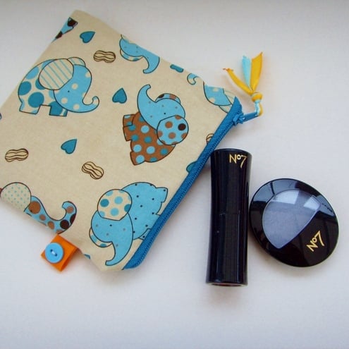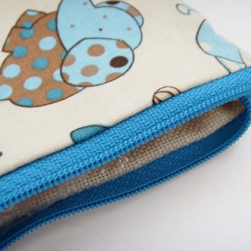 Cute little elephants credit card / coin purse with contrasting zip and lining.