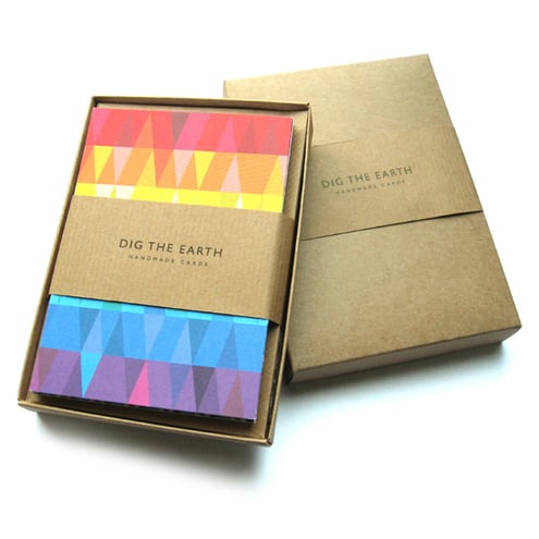 All cards are held together with a 100% recycled brown kraft paper belly band and come packaged in a beautiful brown kraft box.