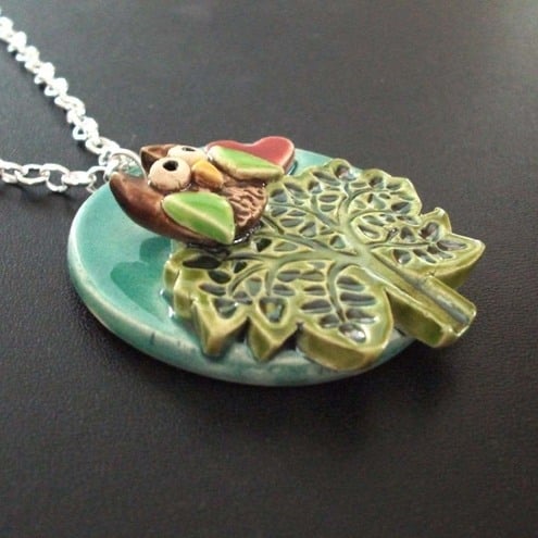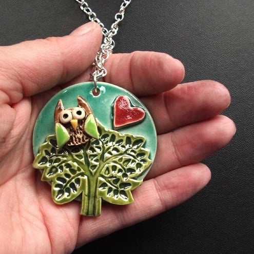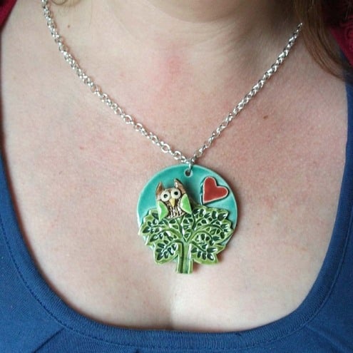 The tree has been stamped into tthe clay and the owl has been hand modelled.
