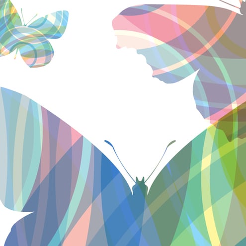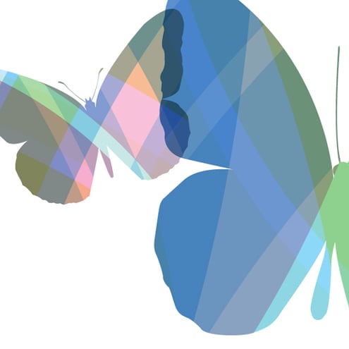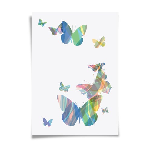 Butterflies No.1 is a fantastically summery illustration in soft rainbow colours. Almost pastel, almost plaid.