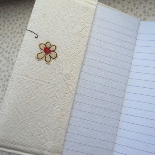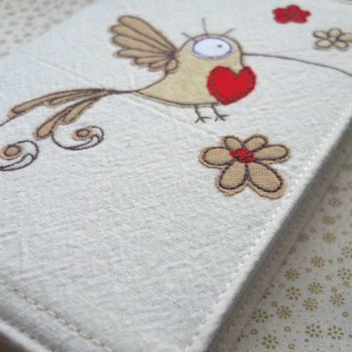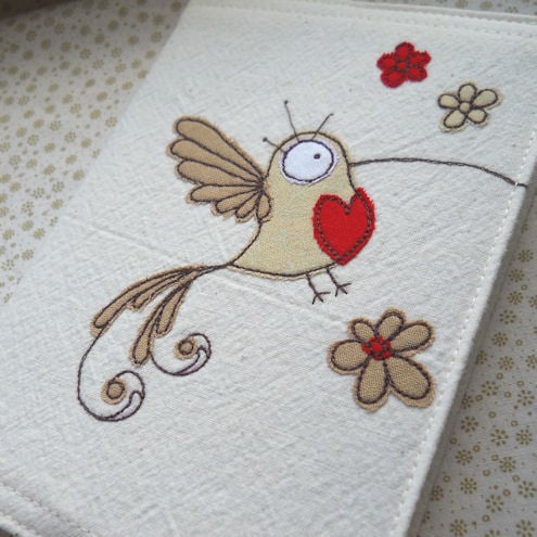embroidered neutral hummingbird fabric notebook cover and A6 notebook