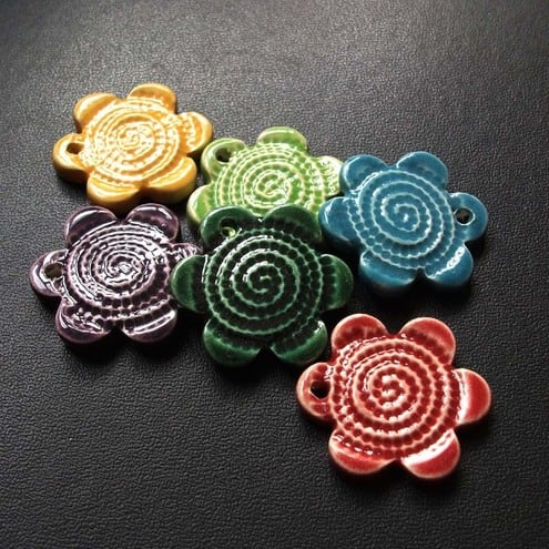 These cute flower charms are made from white earthenware clay and glazed in rich glossy glazes.
