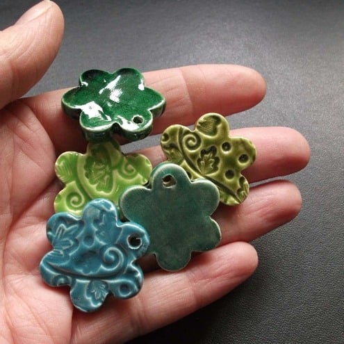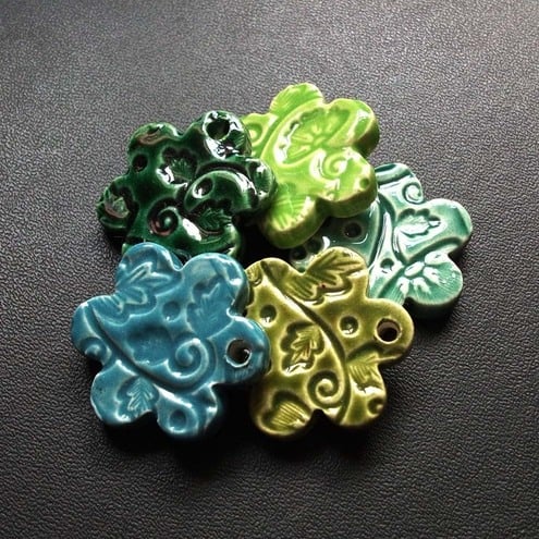 These cute flower charms are made from white earthenware clay and glazed in rich glossy glazes.