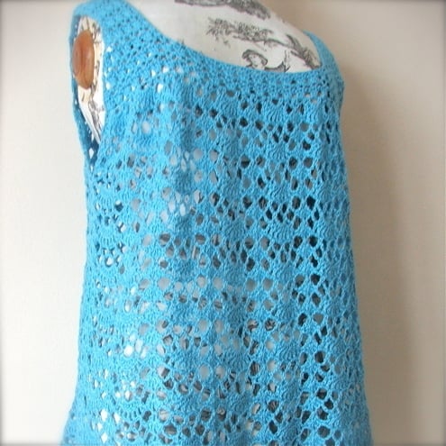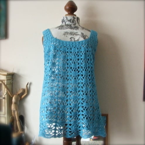 a cotton crochet top inspired by Japanese craft book, perfect for the summer but great for any time of the year as it looks lovely worn on dark vest...