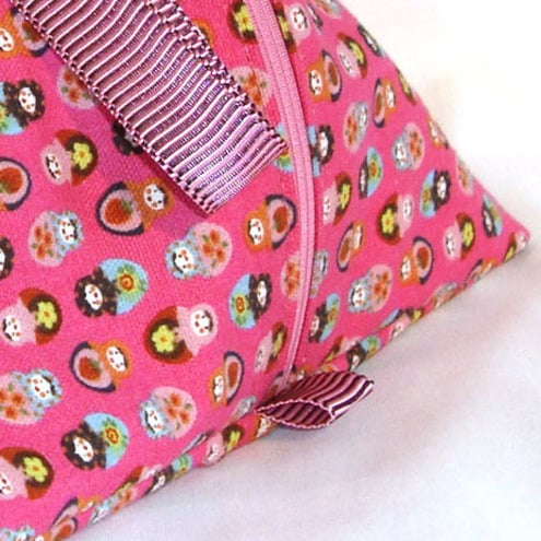 Sewn in beautiful designer fabric, these gorgeous Pyramid Project Bags measure 7" high x 7" wide. The cases are fully lined with a zip fastening closing and carry handle made from ribbon. They are able to hold a sock knitting project with Dpns and 100g of yarn or a small crochet project, yarn and hook.
