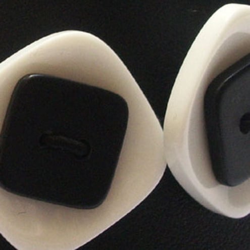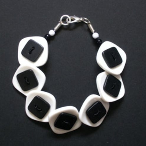 This distinctive button bracelet is made up of black and white square shaped buttons.