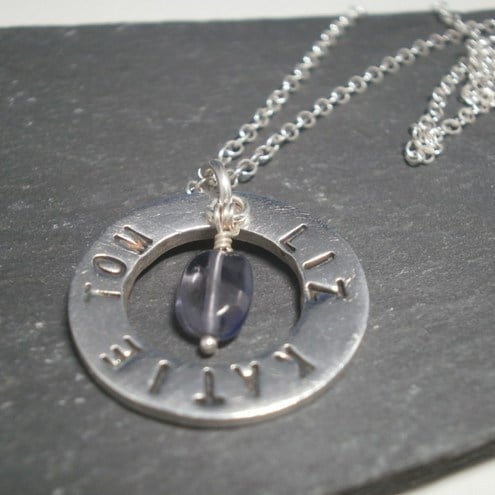 Please state the letters / numbers you want, plus the stone of your choice when you order. (If you don't state a stone you will get the iolite).