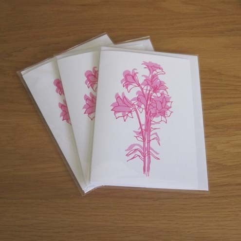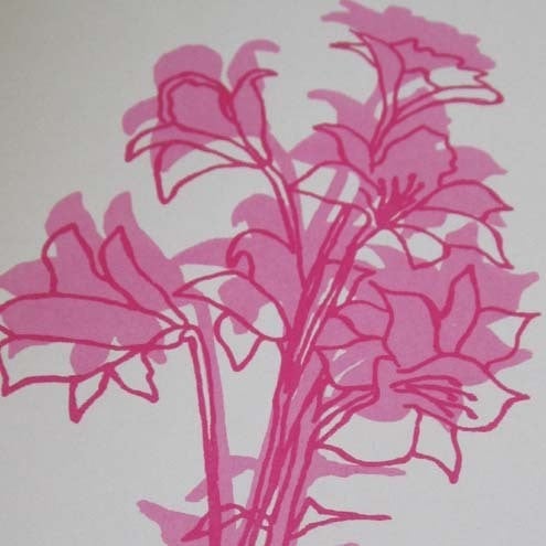 It is printed with pink/magenta water based ink onto smooth, white card 240gsm.