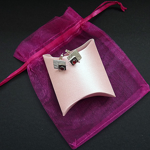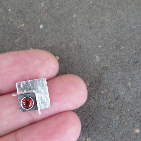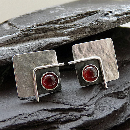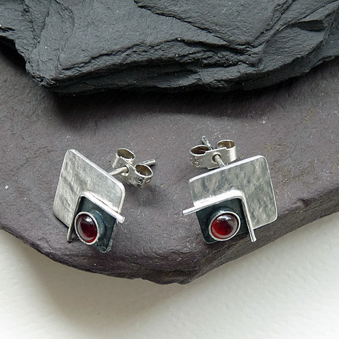 These contemporary square studs with Garnet are completely hand made in sterling silver. They have been textured, partially oxidized and polished to a bright and shiny finish. They have sterling silver butterfly backs.