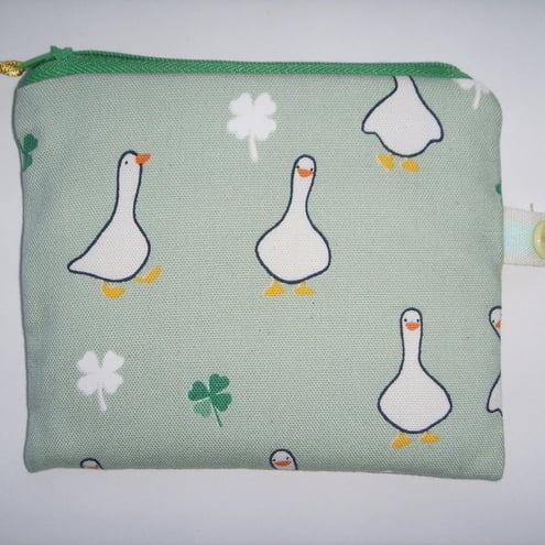 Cute little geese coin purse with contrasting zip, ribbon and lining.