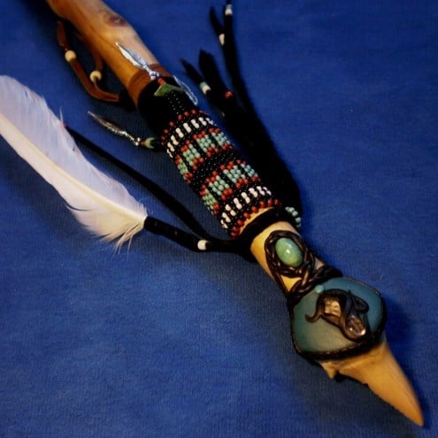 Inspired by Native American culture this is a beautiful and powerful ceremonial wand.