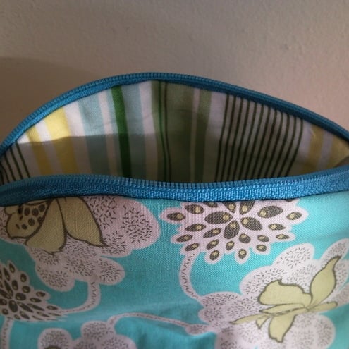 Small makeup bags. Made from new funky material and lined with a contrasting fabric.