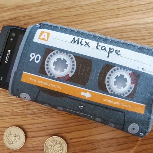 This mix cassette tape case is a great protection for your iPhone, iPod or any other smartphone. Made from very durable, long-lasting and scratch-free felt with a thin fade-resistant coating on top it has a unique style and will last a lot longer than an ordinary felt case.