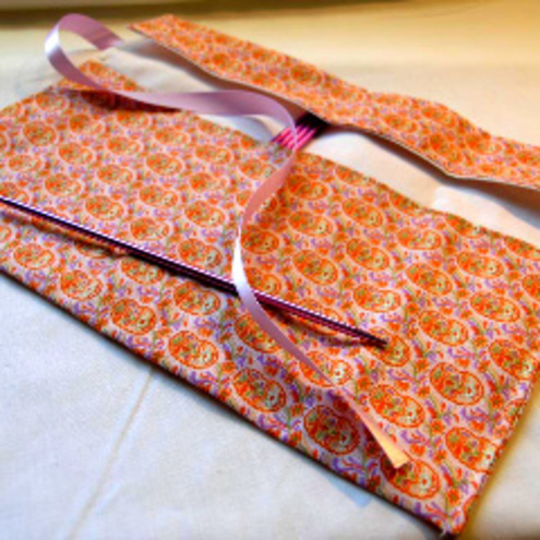 Each Case has enough pockets and plenty of room for your needles sizes, they also fold over the needles so they wont slip out. It rolls up and ties with a ribbon. Ribbon color may vary. Size 10 inches high, 10 inches long with 7-9 needle slots.