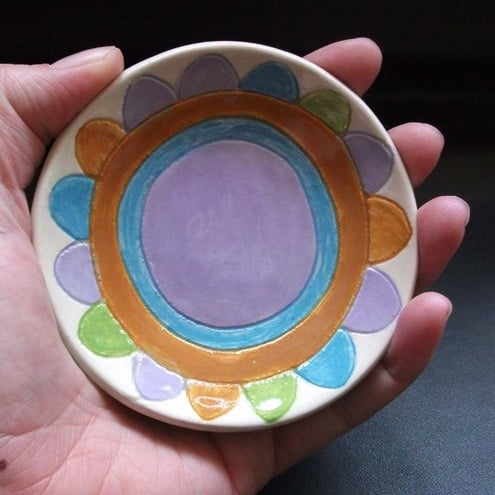 This brightly coloured plate is the perfect size for an individual cupcake or muffin, trinkets or a nice smelly candle!