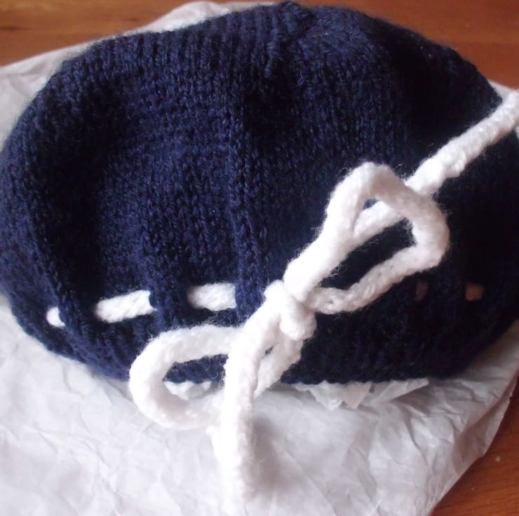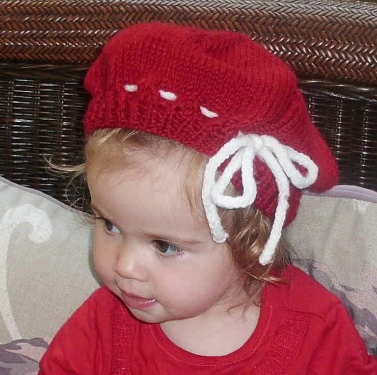 Hand-Knitted beret in gorgeous red or navy yarn with white icord