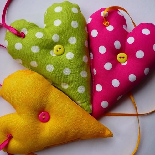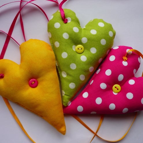 Here we have a set of 3 hanging hearts which have been designed and handmade by me.