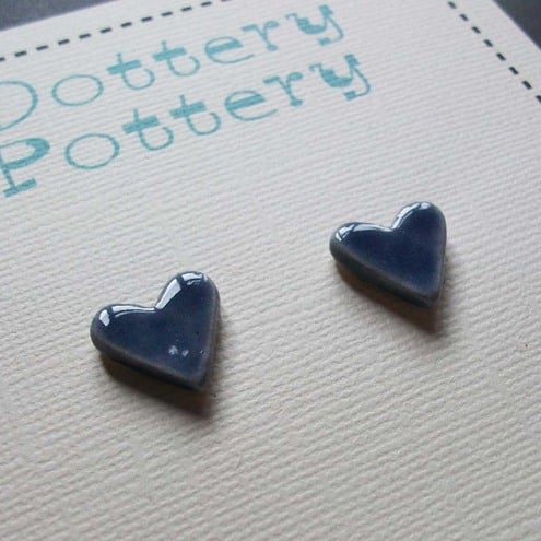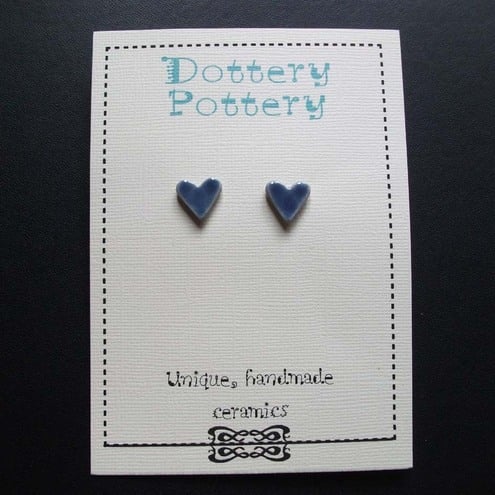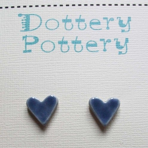 These little bluey/ purple hearts are made from white earthenware clay and decorated with a rich glaze.