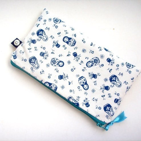 Cute Russian doll make up bag / pencil case with contrasting lining,zipper and ribbon