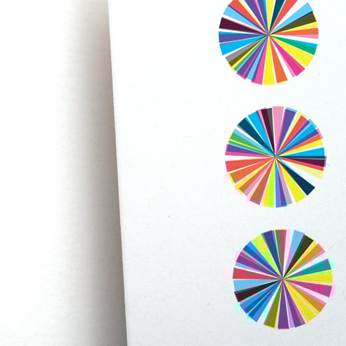 One A6 sized 'Carousel No.1' greetings card. A vibrant retro design, printed in mis-aligned rainbow colours on a smooth white board.