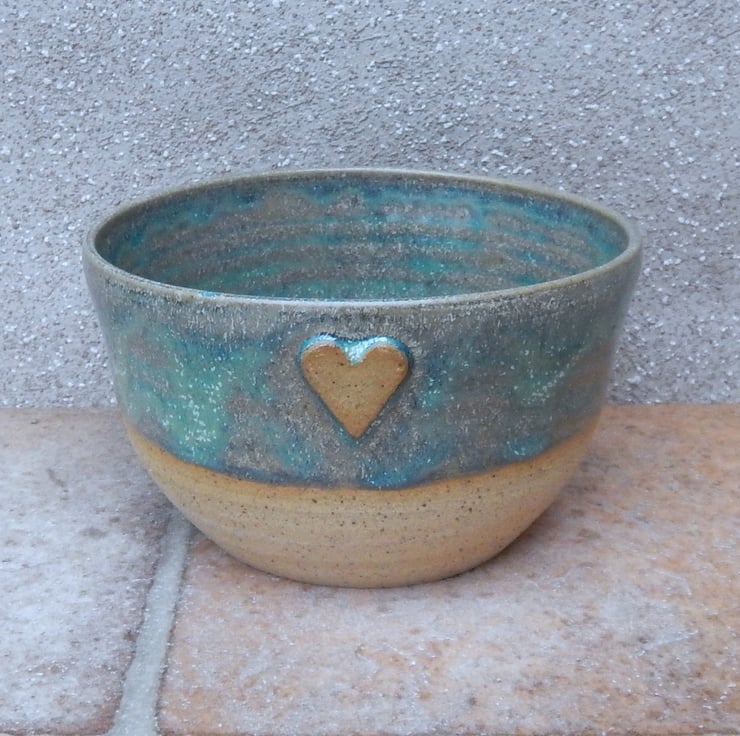 I threw this mug and bowl set on my pottery wheel using strong rustic stoneware clay and finished it in a lovely mottled sage green reactive glaze.