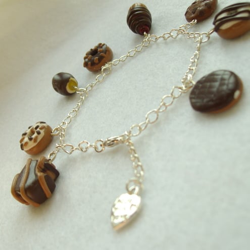This charm bracelet is full of yummy chocolate treats. Each treat is hand made from fimo / polymer clay.