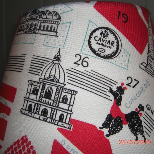 Small Empire shade in lovely cotton Windham fabric showing map and delights of Paris!