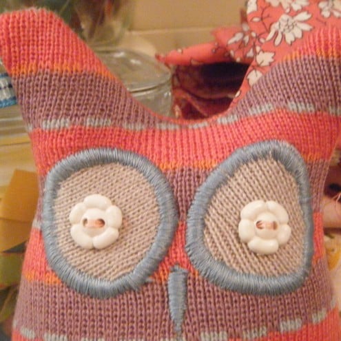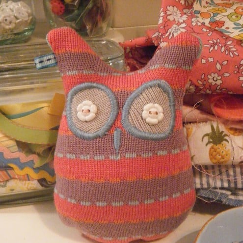 cute little olive owl loves to sleep in baskets and on book shelves, she is a one off and is 12cm tall with a little ribbon tag and flower button eyes