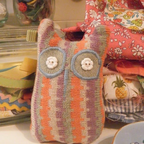 cute little olive owl loves to sleep in baskets and on book shelves, she is a one off and is 12cm tall with a little ribbon tag and flower button eyes