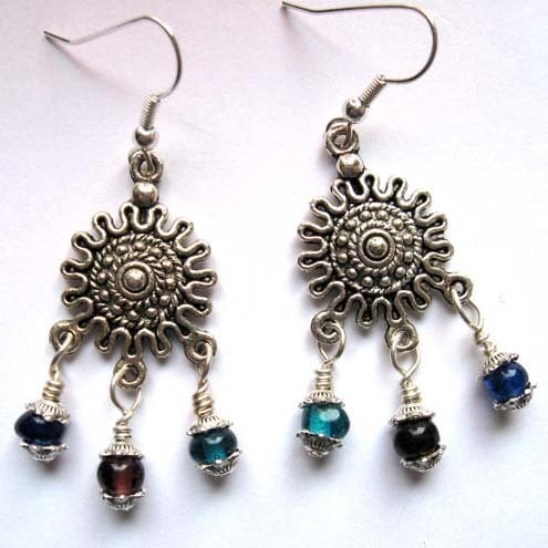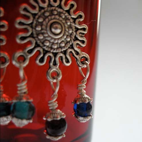 Handmade earrings with handwrapped tiny glass lampwork beads in beautiful jewel colours. Please contact me if you would like different coloured glass beads & I'll see what I can do!